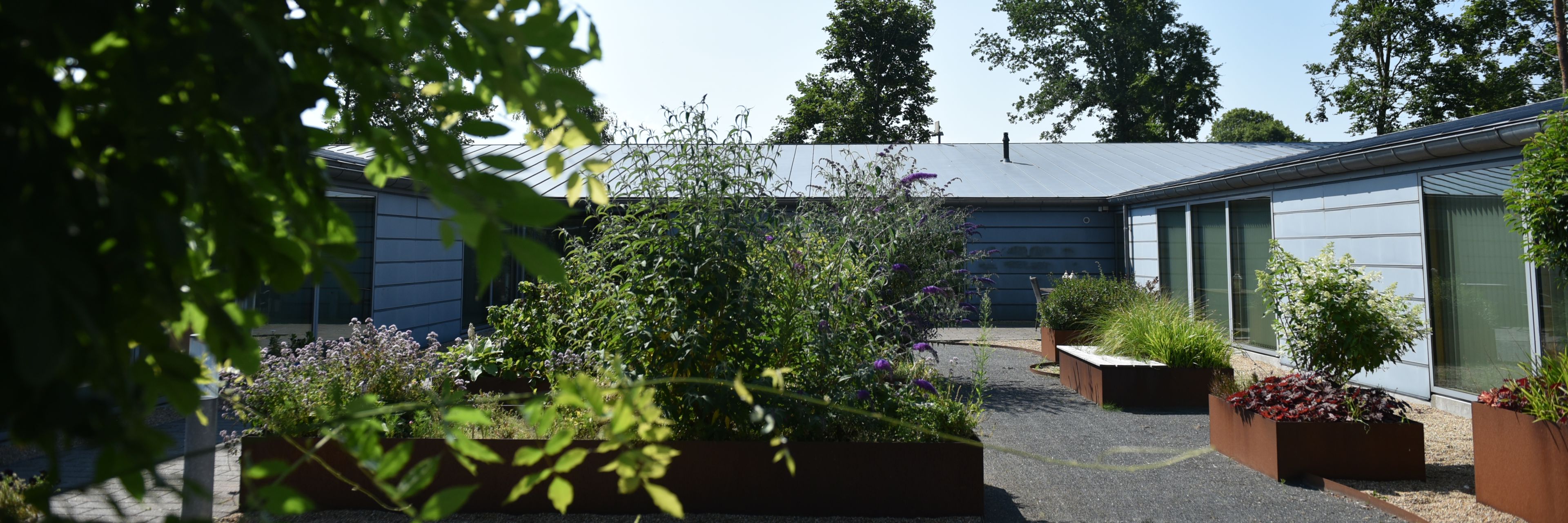 Alle boligerne har en vaskesøjle og egen lille terrasse med udsigt til fælles grønne områder.